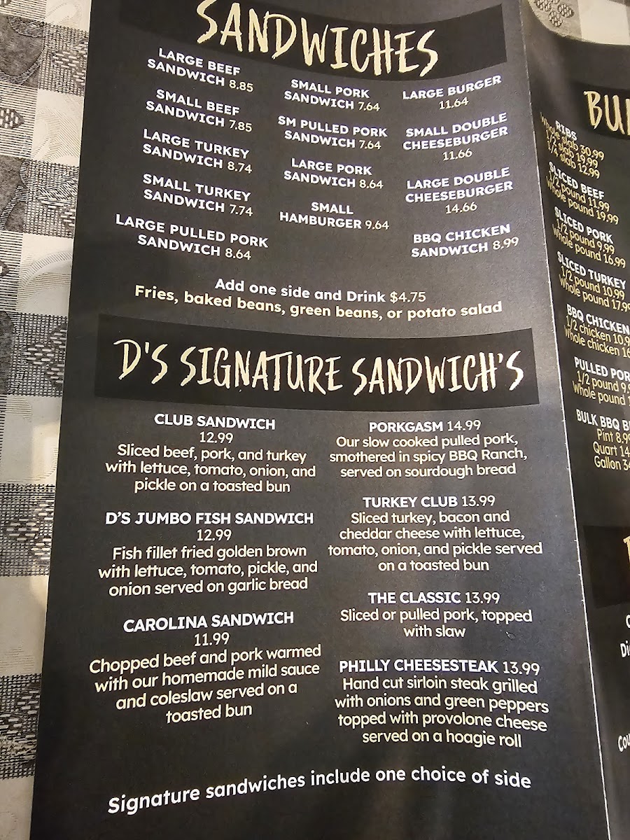 Welcome to Derrick's BBQ, where the heart of Live Oak meets mouthwatering flavors! Located on 1542 Ohio Ave S, this cozy spot is all about delicious, slow-cooked BBQ served with a smile. The menu features D' Signature Sandwiches like the Porkgasm, a pulled pork delight drizzled with spicy BBQ ranch on sweet brioche toast.